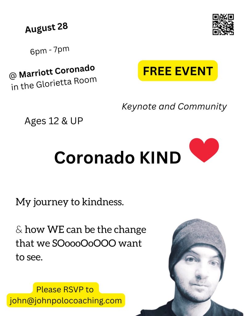 Motivational speaker John Polo will be giving a free speech on kindness at the Coronado Island Marriott Resort on Thursday, Aug. 28 with the simple goal of bringing more kindness to the world and to his community.