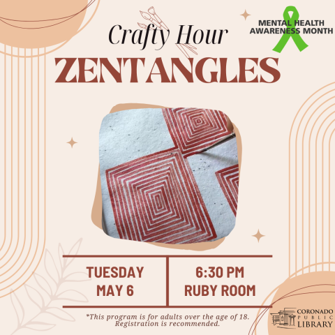 In May we’ll relax for Mental Health Awareness Month by painting some soothing zentangles.