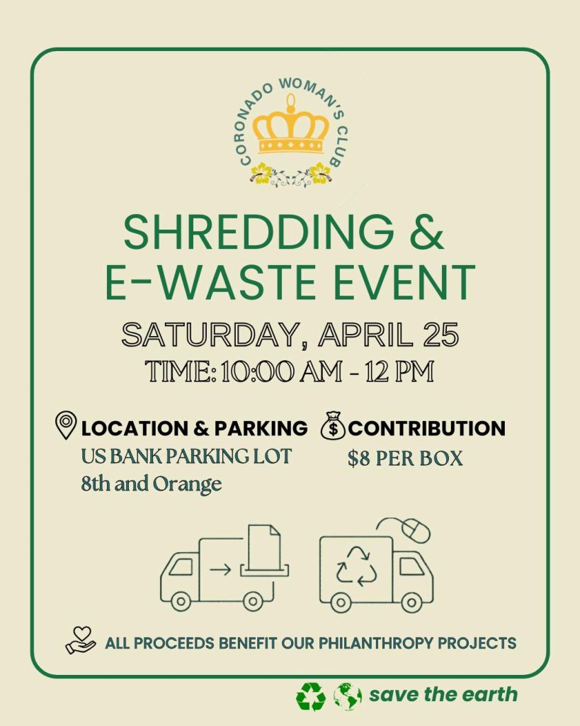 The Coronado Woman’s Club next shredding and e-waste event will take place on Saturday,