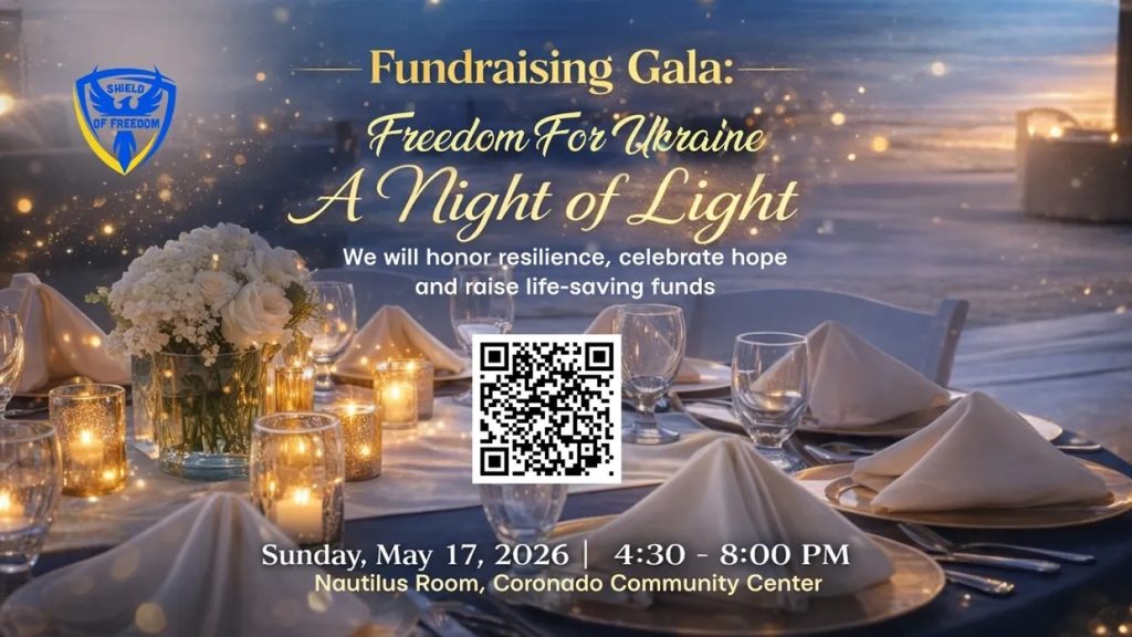Shield of Freedom will host its third annual fundraising gala, Freedom for Ukraine: A Night of Light, on Sunday, May 17, from 4:30 to 8 pm in the Nautilus Room at the Coronado Community Center.