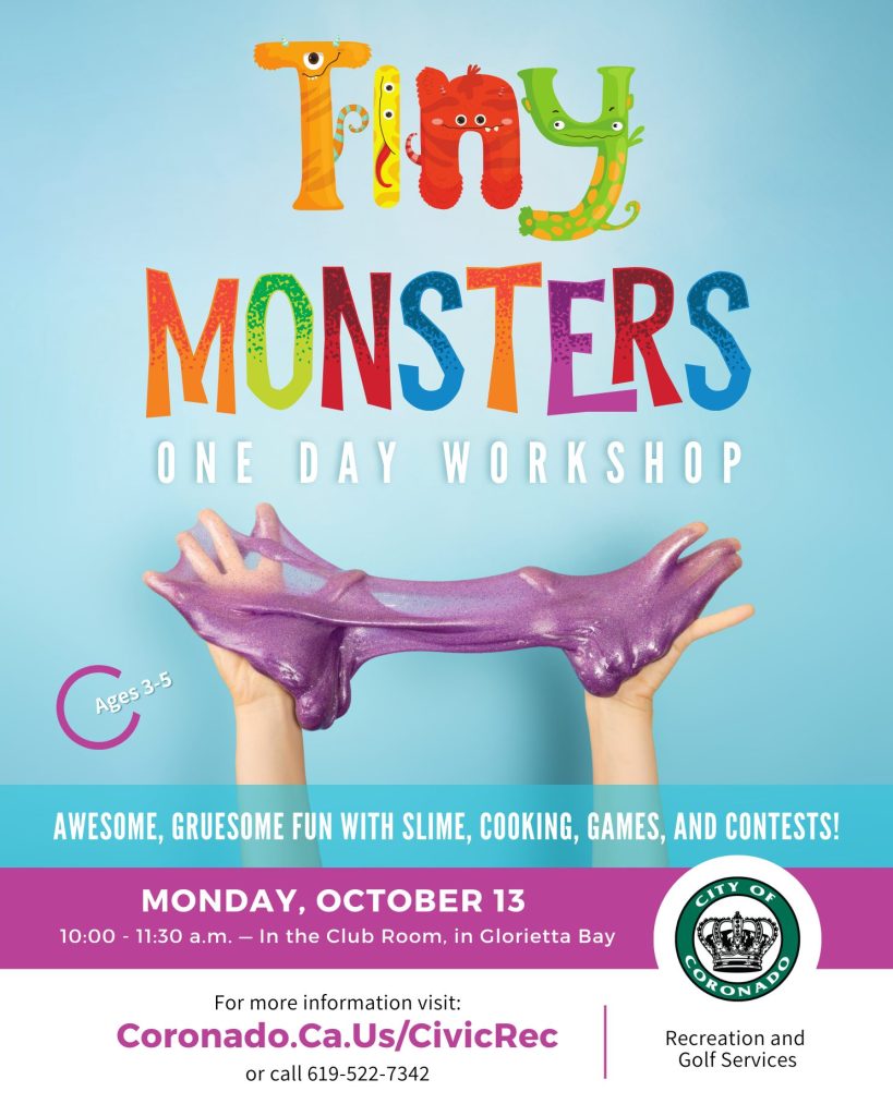 Enjoy Halloween crafts, cooking, sensory play, and a mini party — costumes welcome! Join us Monday, October 13, from 10–11:30 a.m. in the Club Room at Glorietta Bay.