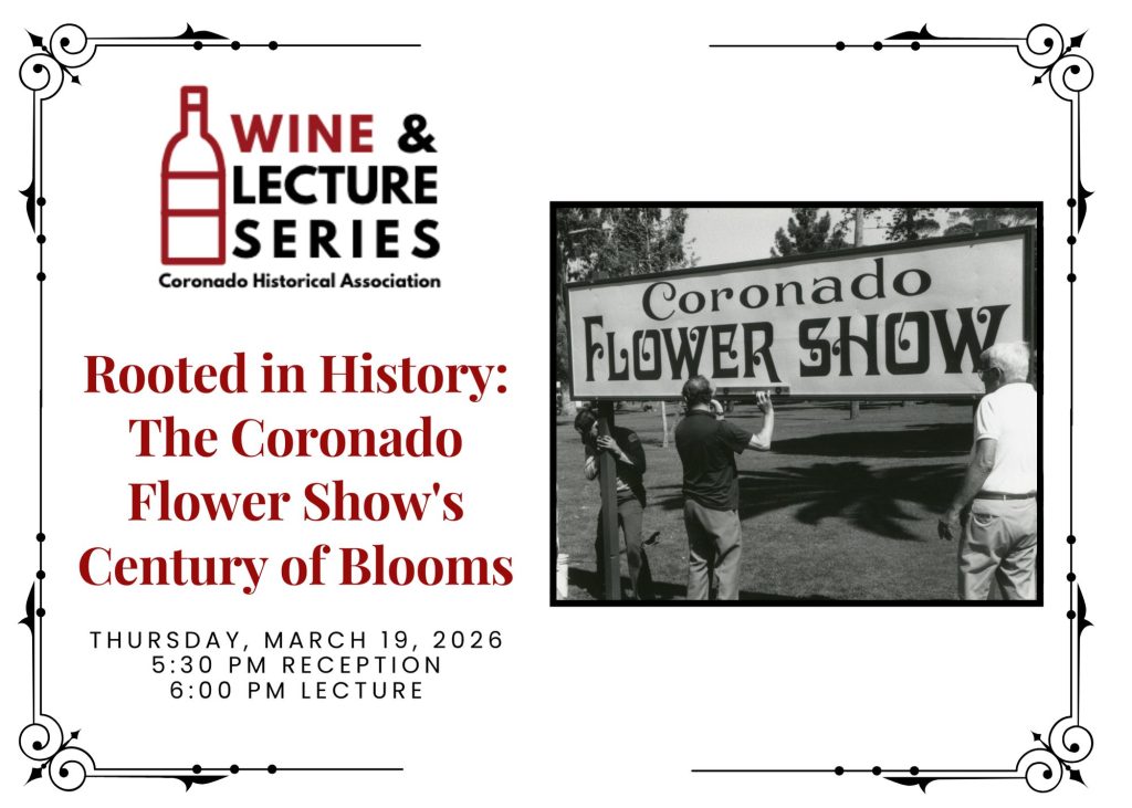 The event begins with a wine and cheese reception at 5:30 pm, followed by the panel discussion from 6 to 7 pm at the Coronado Historical Association, located at 1100 Orange Avenue. Tickets are $15 for CHA or Coronado Floral Association members and $20 for non-members. Because capacity is limited and reservations are required, guests are encouraged to register early at coronadohistory.org. For questions, please contact [email protected] or call 619-435-7242.