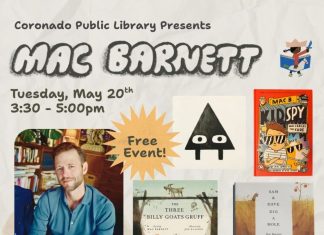 The Coronado Library is thrilled to announce that children's author Mac Barnett (Triangle, Sam and Dave Dig a Hole, Mac Undercover), will appear in...