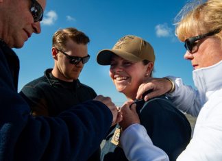 Lt. j.g. Rebecca Bayer, a native of Coronado, assigned to the Wasp-class amphibious assault ship USS Boxer (LHD 4), is pinned to the rank...