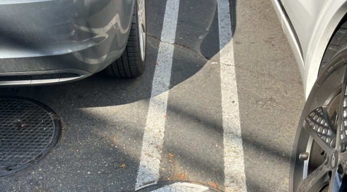 This "slight imperfection" was spotted today at the Vons parking lot in Coronado. For those of you with a little "Type A" in you, yes, it bothers us too. Not a big bother, just a "why not just line...