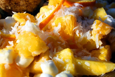 Minute Chef, Brad, whipped up a Key Lime Pie. Unfortunately, my photos didn’t do it justice and his whipped cream lost most of its whip by serving time. It had wonderful tartness. I couldn’t stop with Orange Chicken. Ina Garten tempted me with her Orange Pound Cake, from Barefoot Contessa, Family Style. The batter has the zest of 6 oranges, as well as a little orange juice and buttermilk. The glaze also has orange juice. It was very moist and orangy.