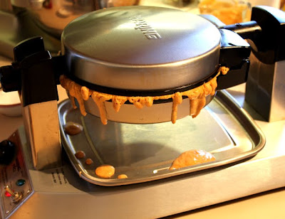 Brush waffle iron lightly with oil and spoon batter into waffle iron, spreading quickly. I was a bit overzealous with the batter on this one!