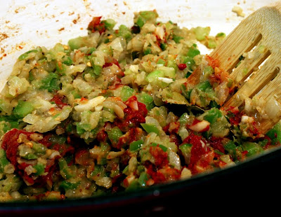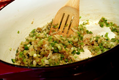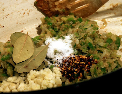 4 tablespoons flour 2 cup finely chopped yellow onions 1 cup finely chopped celery 1 cup finely chopped green bell peppers 2 tablespoon minced garlic 1 1/2 teaspoons salt 1 teaspoon crushed red pepper, or to taste 4 bay leaves 4 tablespoons tomato paste 3 cups finely chopped, peeled, seeded tomatoes 1 20 oz. can chopped tomatoes with the juice 3 teaspoons chopped fresh oregano 4 teaspoons chopped fresh basil 2 teaspoons chopped fresh thyme 2 teaspoons grated lemon zest 2 teaspoons Worcestershire sauce 3 teaspoons hot pepper sauce 4 cups cold shrimp stock or fish stock 2 pounds medium shrimp, peeled and deveined 1/2 cup chopped fresh parsley 1 cup white wine 1/2 cup heavy whipping cream Crispy Polenta, as an accompaniment (prepare the polenta per package directions, spread in a buttered baking dish, about 1 inch deep, and refrigerate) 1/2 cup chopped green onions, green tops only, garnish Preparation In a large Dutch oven, heat the bacon grease over medium heat. Add the flour, and stir constantly with a heavy wooden spoon until a light brown roux forms, about 6 minutes. Add the onions, celery, and bell pepper and cook over medium heat, until the vegetables are tender, 5 to 6 minutes. Add the garlic, salt, red pepper, and bay leaves, and cook, stirring, for 30 seconds. Add the tomato paste and cook, stirring constantly, until it starts to color, about 2 minutes. Add the tomatoes, oregano, basil, thyme, lemon zest, Worcestershire, and hot sauce, and cook, stirring, for 2 minutes. Add the stock and bring to a boil. Reduce the heat to low and simmer, uncovered, until the sauce thickens , 20 to 25 minutes, stirring occasionally. Add the shrimp and parsley, and cook, stirring occasionally, until the shrimp are just cooked through and pink, about 3 minutes. Remove from the heat and discard the bay leaves. Add the white wine and cream and gently stir to incorporate. Adjust the seasoning, to taste. Cut the refrigerated polenta into circles with a 4 inch cutter and saute in peanut oil until lightly brown and crispy. Place a polenta circle in the center of a bowl or plate and spoon the Shrimp Creole over and around it. Garnish with green onions and serve immediately.