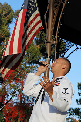 A handsome sailor, from the Navy Southwest Band, belted out America the Beautiful….
