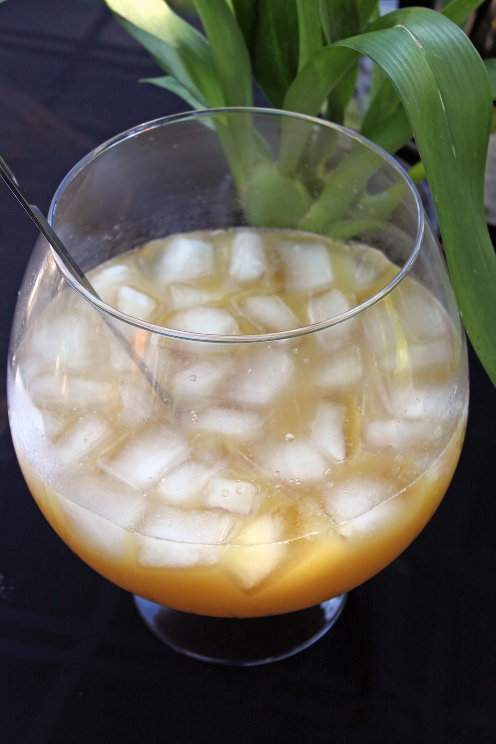 Alec & Nina started us off with a giant My Thai cocktail, made with light and dark rums, Disaronno Amaretto, Grand Marnier, Triple Sec, and pineapple and orange juices. We sipped our cocktails and nibbled on John’s spicy Roasted Coconut Cashew Nuts.