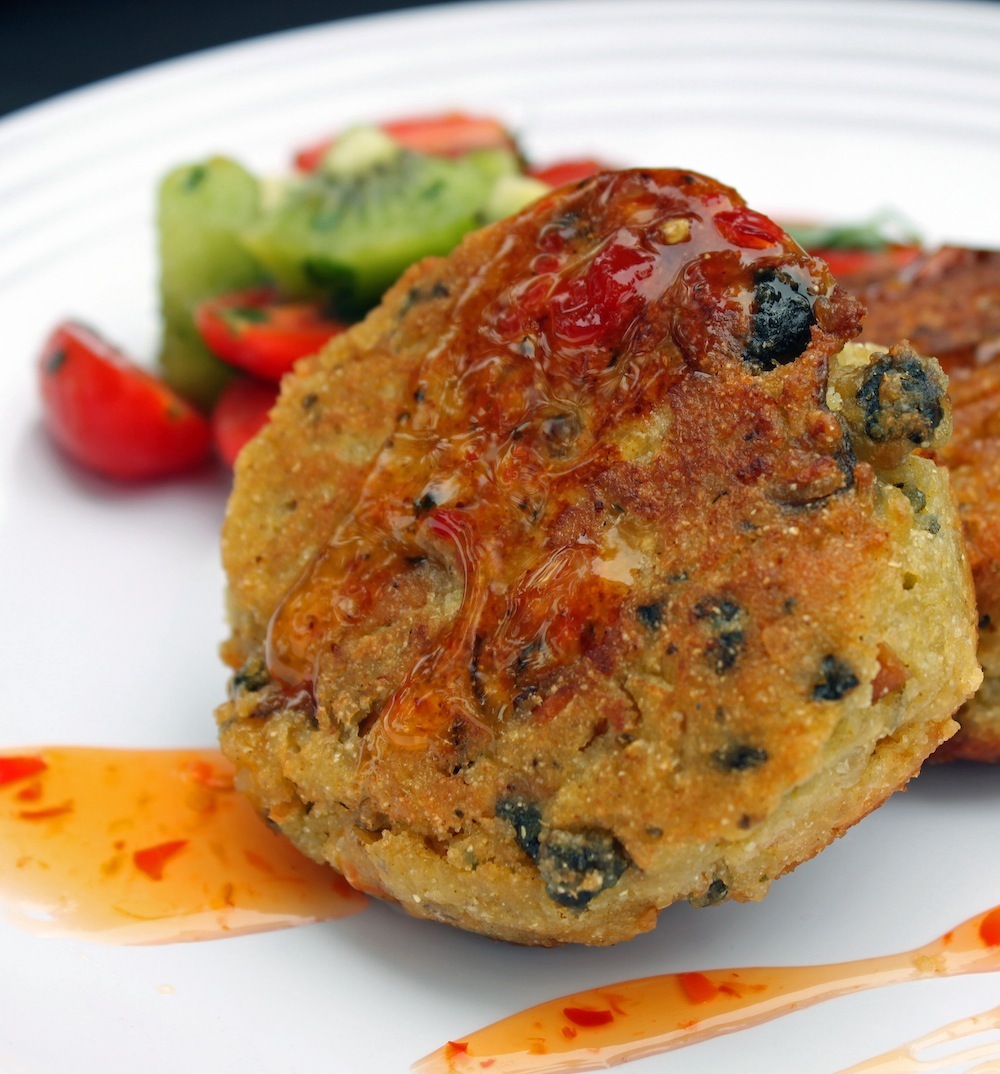 Jim and Carmen arrived with a hot basket of Green Lip Mussel Fritters and Kiwi & Tomato Salad.