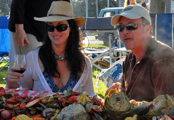 Carefully pour out the shellfish and vegetables down the middle of the prepared table. Provide bowls of Remoulade and Rouille, wedges of lemon, and a basket of Carmen’s mom’s homemade buttermilk biscuits.