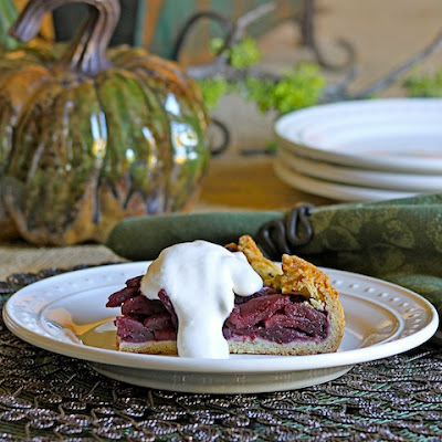 The December 2010 issue of Saveur arrived in the mail in the nick of time for Thanksgiving and the November Daring Bakers’ challenge. When I saw the photograph of this gorgeous apple, red wine and cinnamon crostata, a traditional Occitan dessert from the northern Italian village of Oulx, I knew it was destined to appear on the Thanksgiving dessert table next to an encore presentation of Bobby Flay’s Throwdown Pumpkin Pie. I also felt it would be a striking contribution to the array of Daring Bakers’ crostate going to press on “reveal” day.