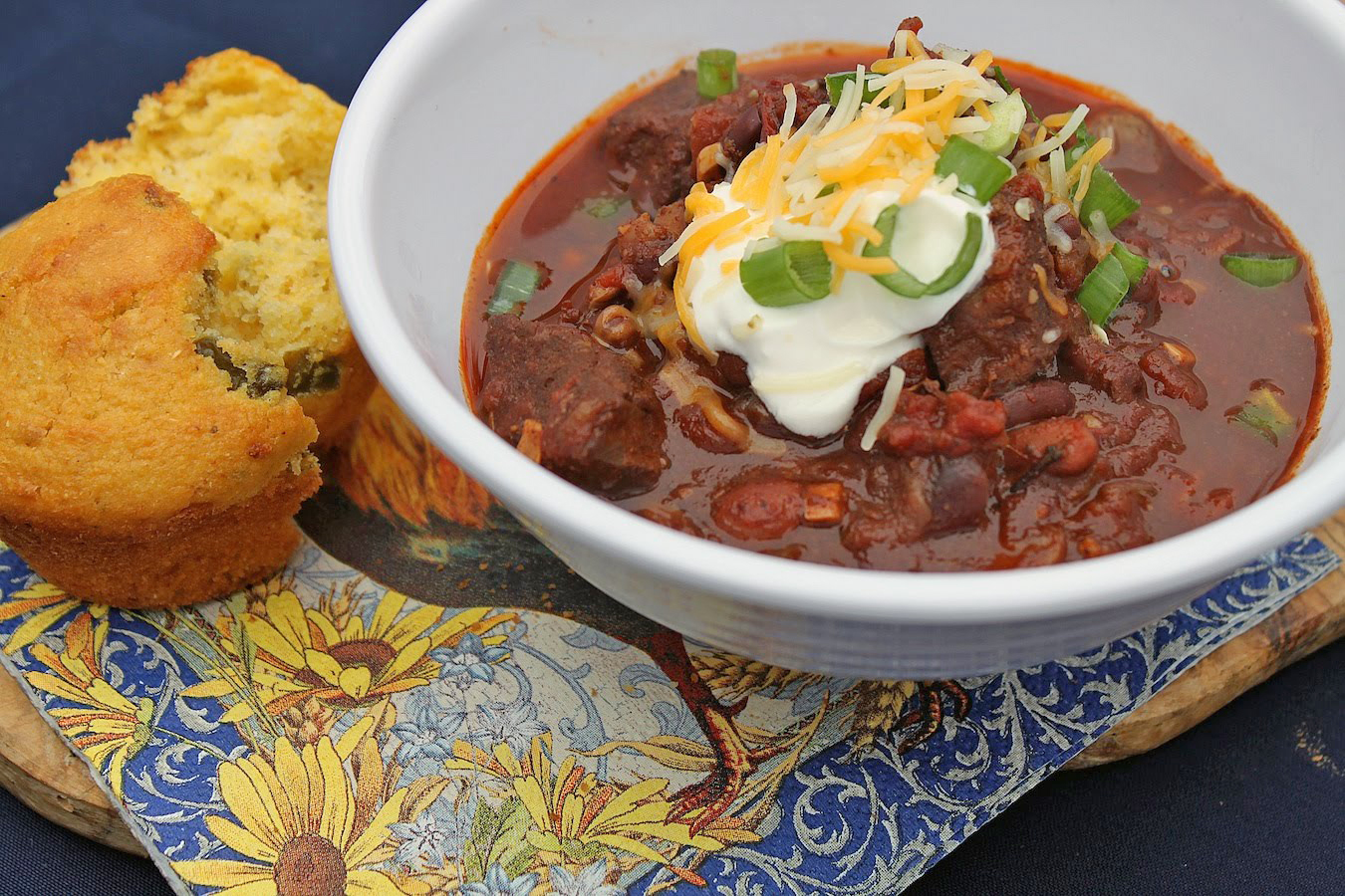 Kai’s Beef, Bean and Vegetable Chili helped keep us warm on the high seas