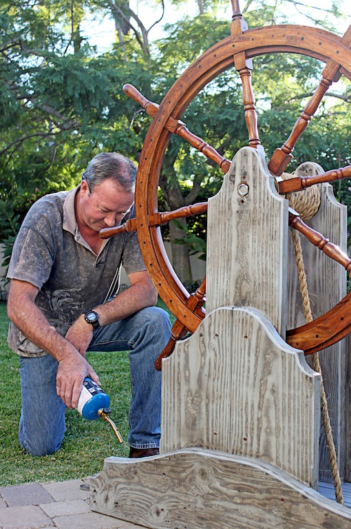 | The Captain, building the helm |