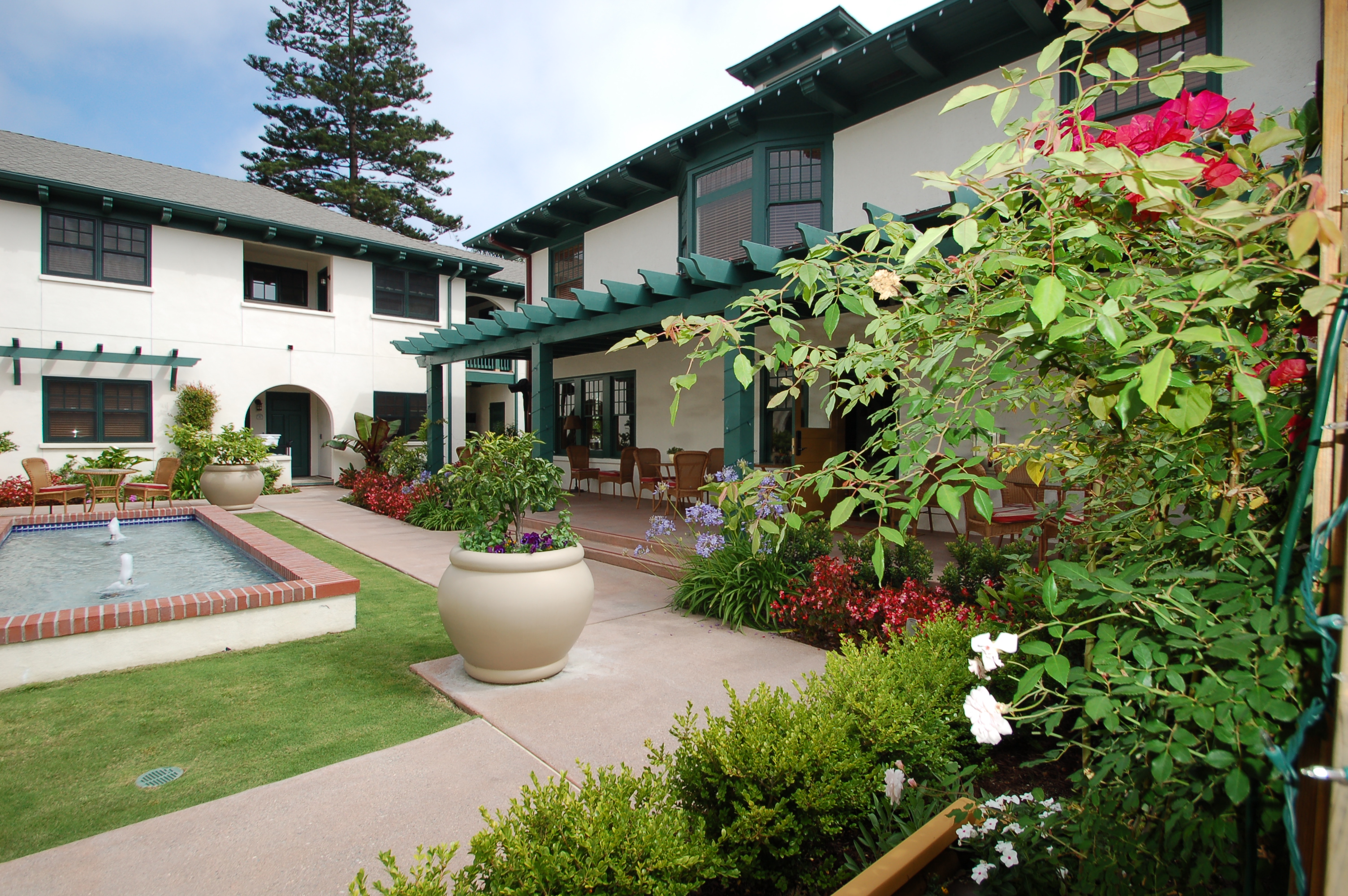 Opened in May of 2009, the 1906 Lodge’s landscape has now matured to fulfill the shared vision. Guests of the intimate 17 room hotel particularly enjoy partaking of breakfast or afternoon wine from the back veranda overlooking the garden courtyard. The two water features provide gentle background “music” to enhance the relaxing atmosphere of the property.