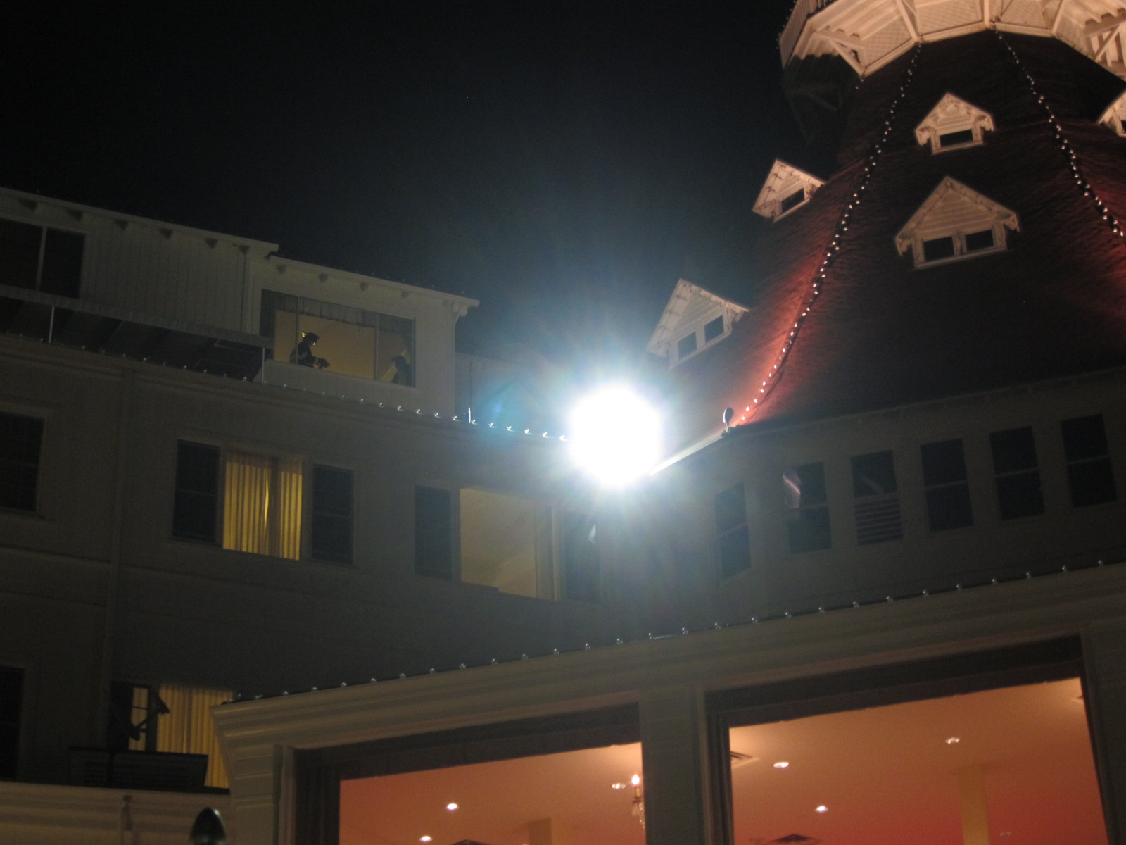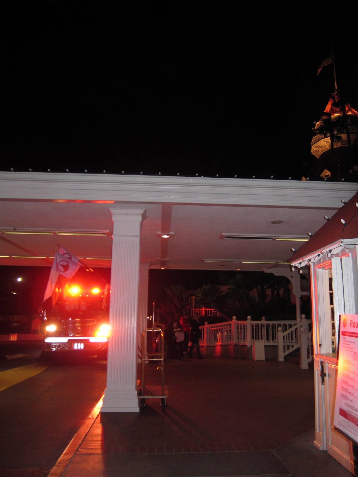 The holiday lights were out on the Del last night for over an hour while firemen investigated a reported smell of smoke in one of the rooms.
