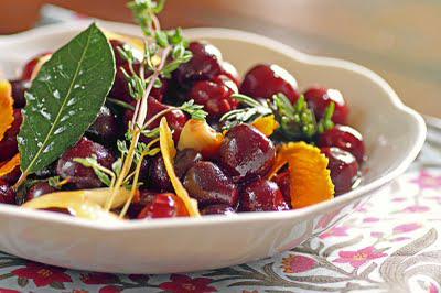 Cherries as Olives were a surprise hit at one of our summer Concerts in the Park. These come from Chef José Andrés’ Made in Spain cookbook. Fresh cherries are marinated in a mix of olive oil, orange and lemon juice and zest, garlic, rosemary, thyme, bay leaves, and sherry vinegar, with an optional sprinkling of Marcona almonds before serving. Please try these for your next party or picnic. They are addicting! |