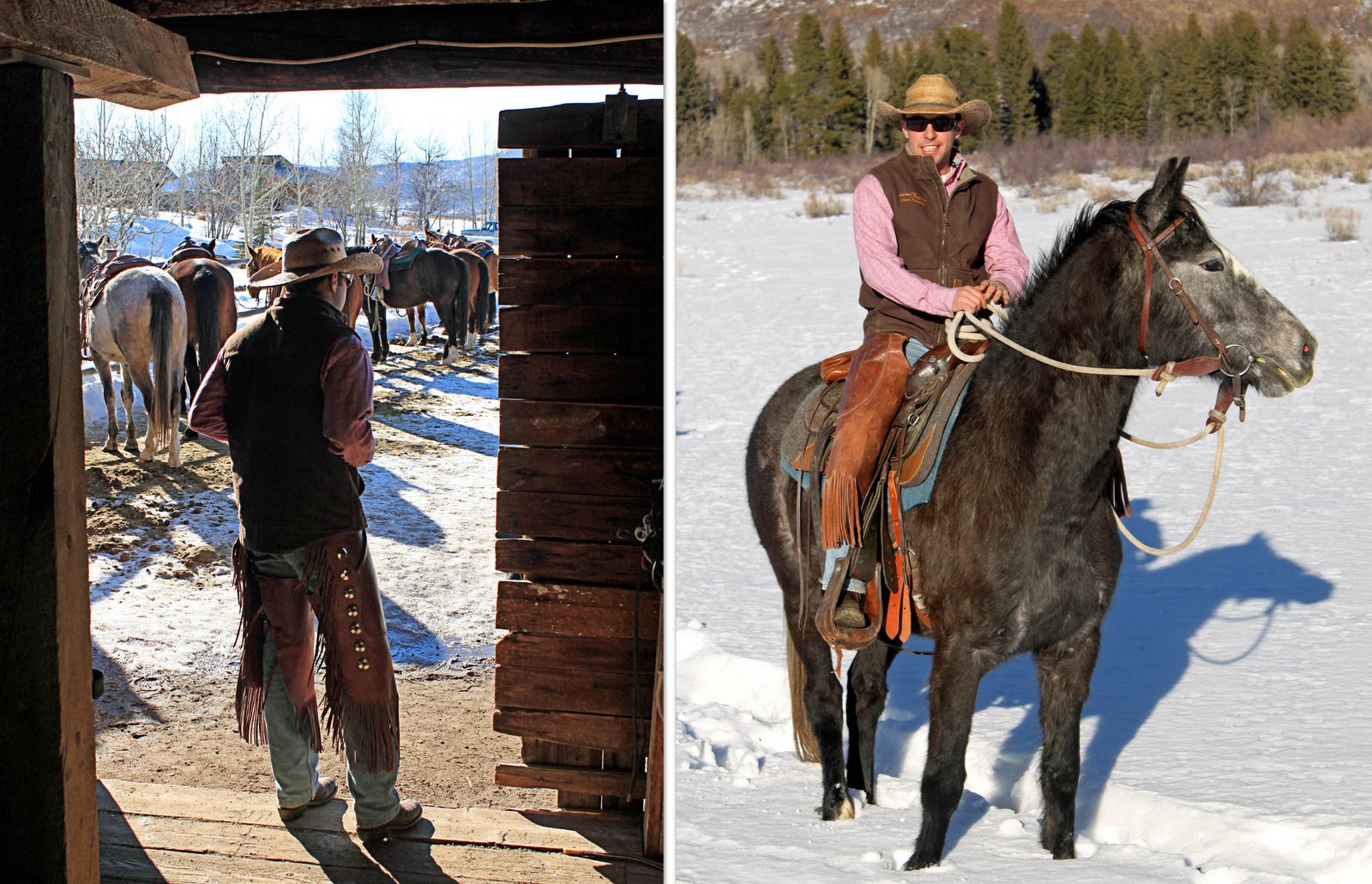 Horseback riding is saved for the afternoon, when the temperatures are a little warmer and the trails less icy. The scenic and peaceful winter trail winds down through the aspens and along the edge of the river, takes about an hour, and leaves time for an afternoon ski, or curling up with a book in the lodge with ranch cat, Buster.