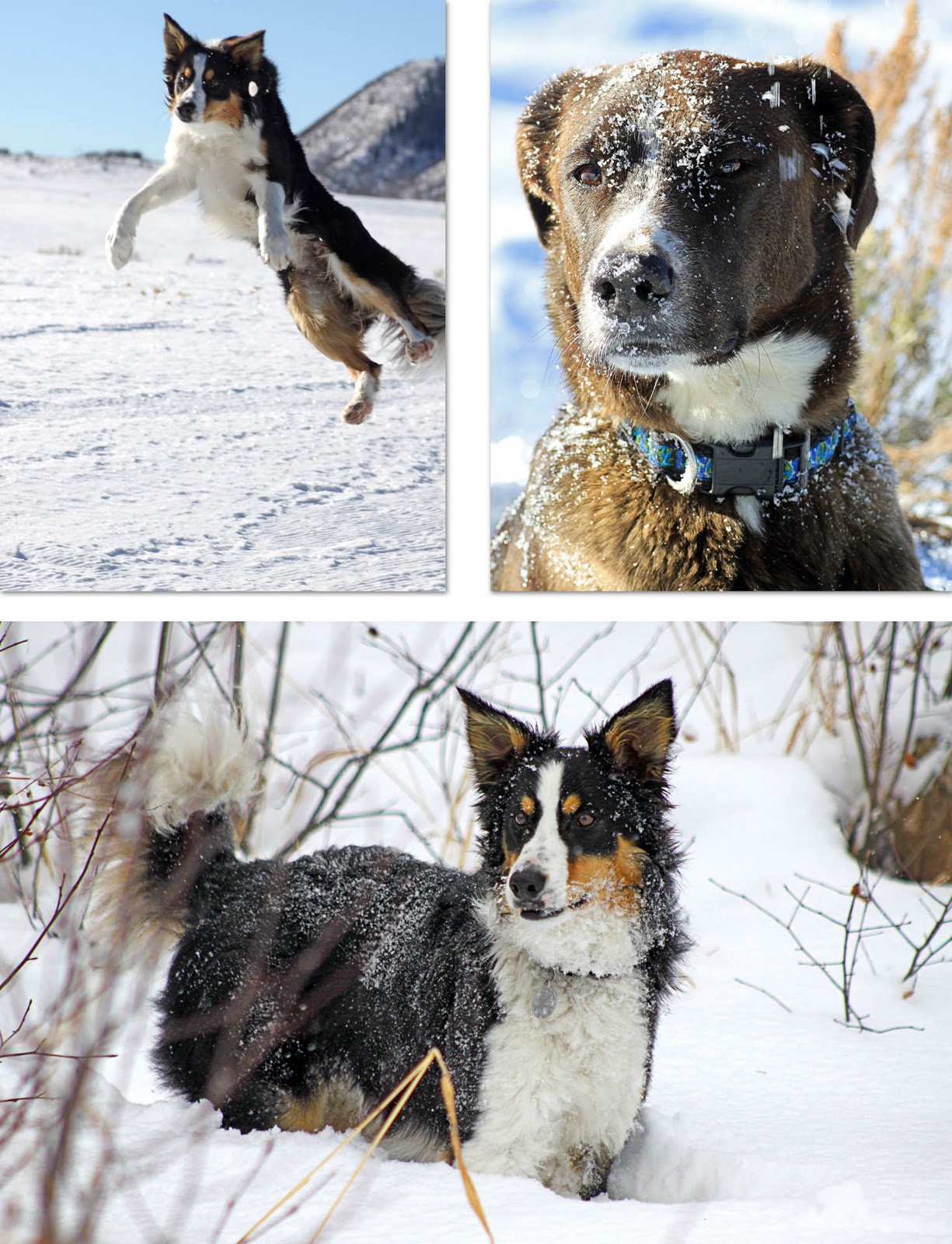 On another morning, ski guides, Mike and Mark, set us up with boots and snowshoes for a hike. Selina’s Timber, and Johnny’s Amos, are more than willing to tag along. Having the company of these two goofs helped when we were missing our Dooley-dog. Amos will forever be your friend if you throw chunks of ice for him to fetch, and Timber loves to pounce in the snow, bury his head, and frantically dig for whatever he’s heard scurrying below.