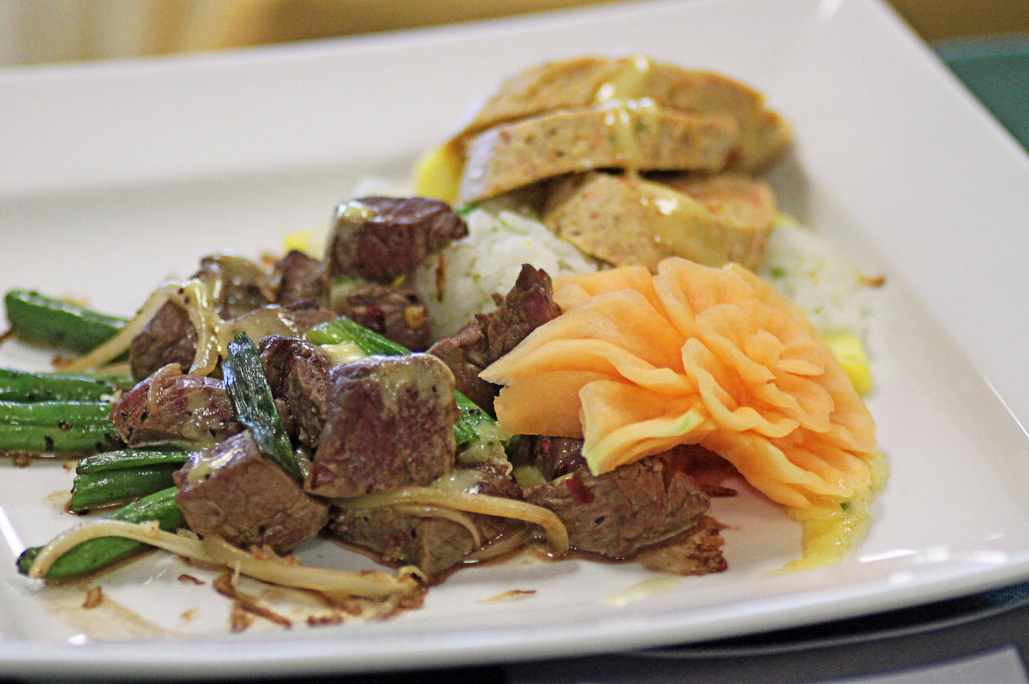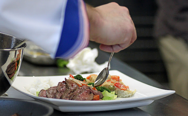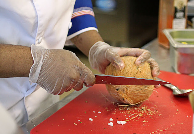 The chefs were allowed two hours to prepare and present entrées using beef tenderloin, chicken, and coconut milk, the secret ingredient announced just before the competition. They were free to incorporate additional fresh produce and pantry ingredients provided.