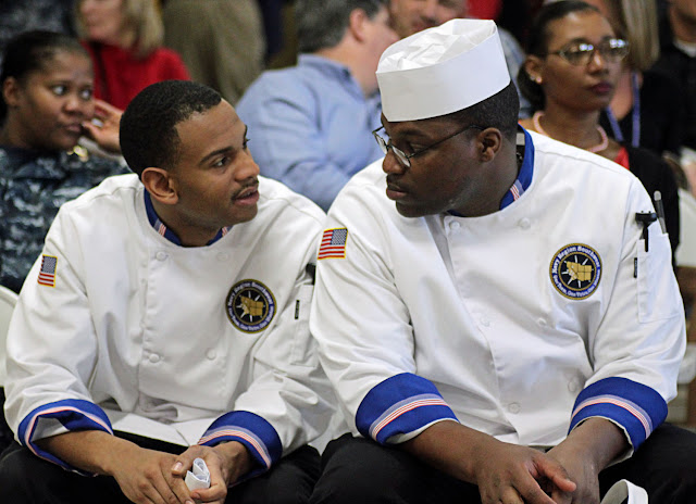 As reported by Mass Communication Specialist 3rd Class Michael Feddersen, Navy Region Southwest Public Affairs, the Navy’s more than 7,000 culinary specialists (CS), deployed around the globe, feed on average more than 92 million wholesome and nutritious meals per year, ensuring the Navy’s fighting forces operate at peak performance and are ready to respond to threats worldwide. Navy commanding officers agree that nothing impacts Sailors on a day-to-day basis more than the food CSs prepare for them; they believe these top quality meals contribute directly to Sailor quality of life and morale. Today’s CSs have greater culinary instruction than ever before. With even more advanced training on the way, Sailors, both afloat and ashore, can look forward to even healthier and better-tasting meals in the near future.