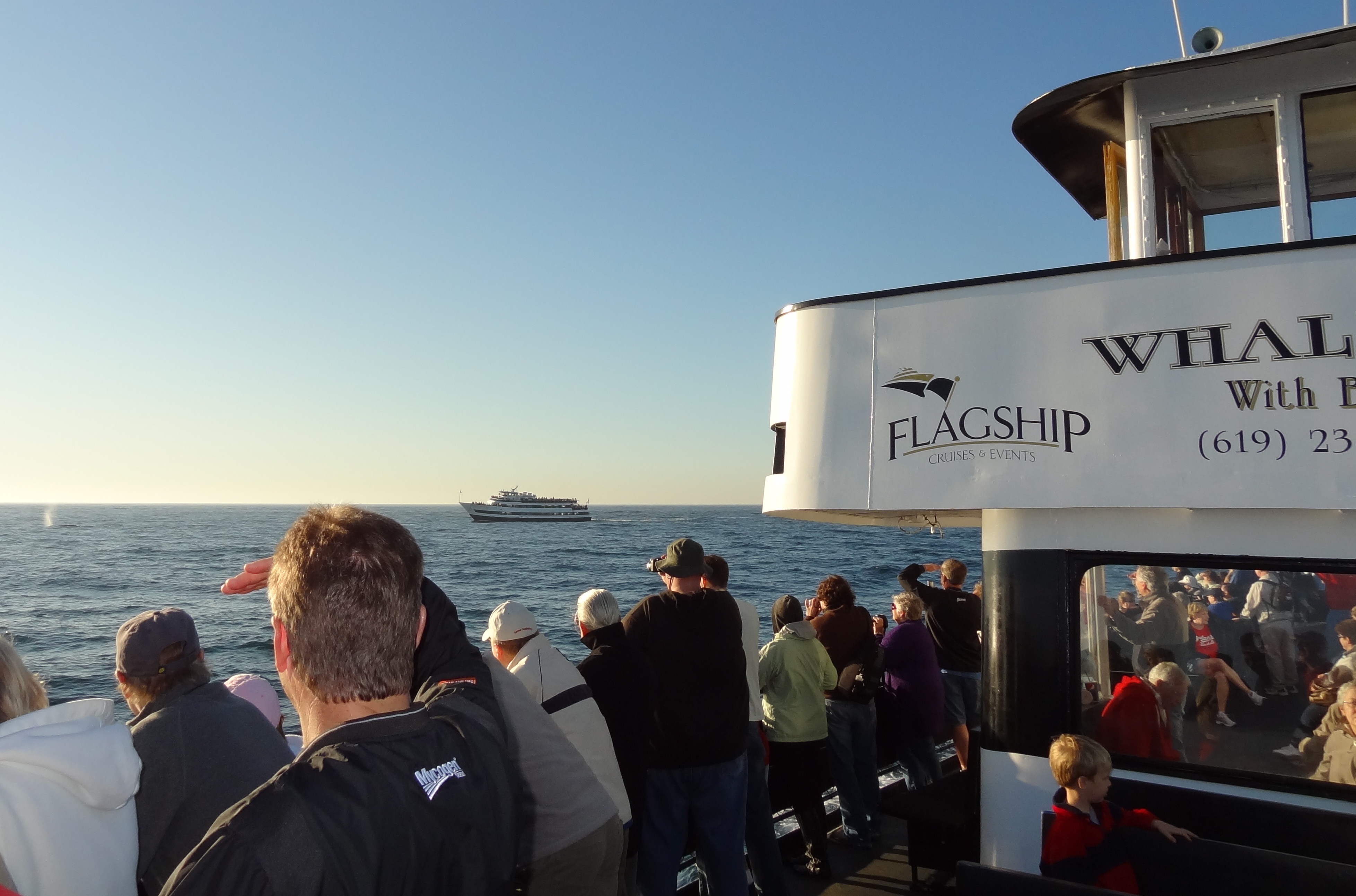 There are many options when it comes to whale watching in San Diego, both for those who wish to stay on land and for those willing to step aboard a sea-going vessel and catch sight of the animals up close. On a clear day, you can watch for the spouts of passing whales at the Cabrillo National Monument, at the very end of Point Loma. There is a small fee to enter the national park, but the breathtaking views of the Pacific Ocean, San Diego Bay, Coronado Island, and the city skyline, are well worth it. The new glass-enclosed observatory is the perfect place to spot the gray whales, along with helpful plaques explaining what to look for and coin-operated viewing machines to make the job easier. Another great place to watch for the Gray whales is at the Birch Aquarium at Scripps, in La Jolla.