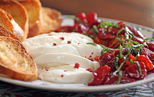 Burrata, Tomato and Roasted Strawberry Salad