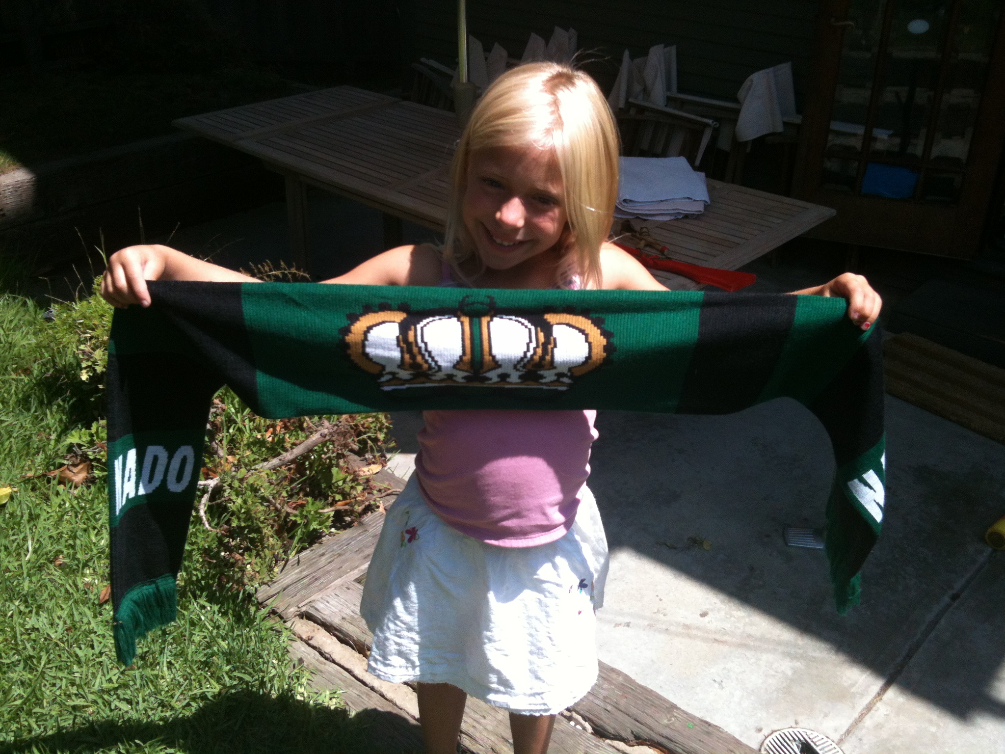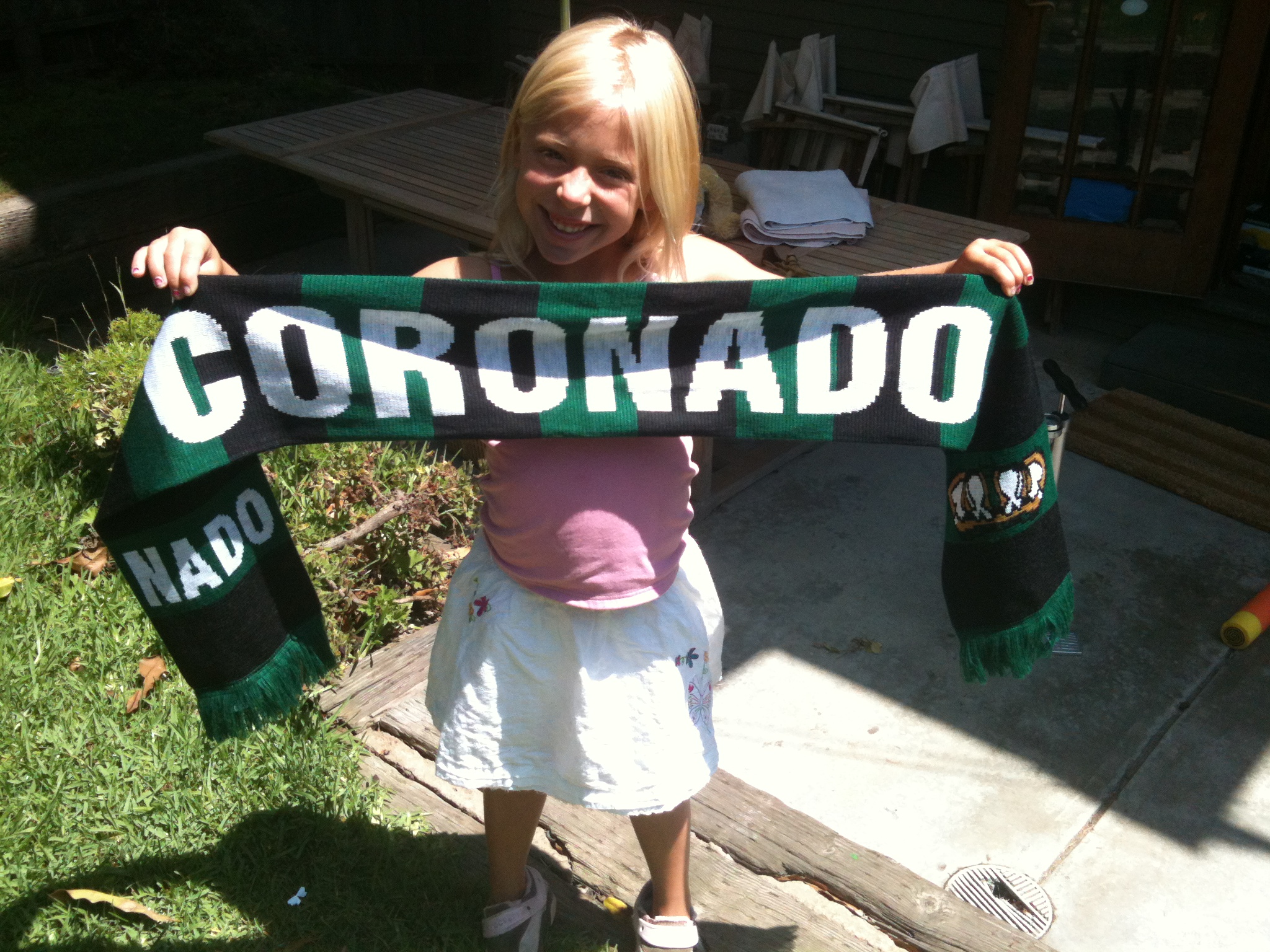 The Boys U11 NADO team is selling Coronado scarves to raise funds for tournaments and other expenses associated with their soccer team. All the money raised will go directly to the kids. The scarves are 100% acrylic(not itchy) with green and black stripes. The scarf is 2 sided with the Coronado crown on one side and NADO printed on the ends, just above the green fringe. On the other side is CORONADO printed in white, with the Coronado crown printed just above the fringe. The scarves are $20 each.