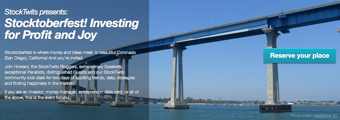 Join Howard, the StockTwits Bloggers, extraordinary Speakers, exceptional Panelists, distinguished Guests and our StockTwits community rock stars for two days of spotting trends, data, strategies and finding happiness in the markets.