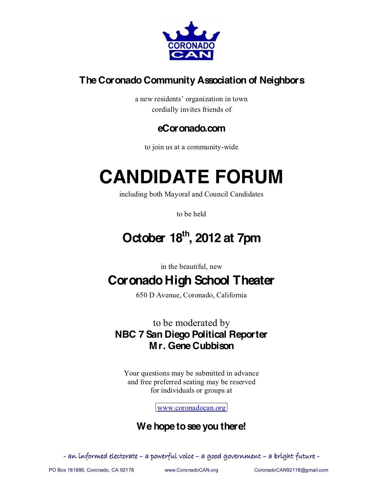 Election: Candidate Forum October 18th at CHS