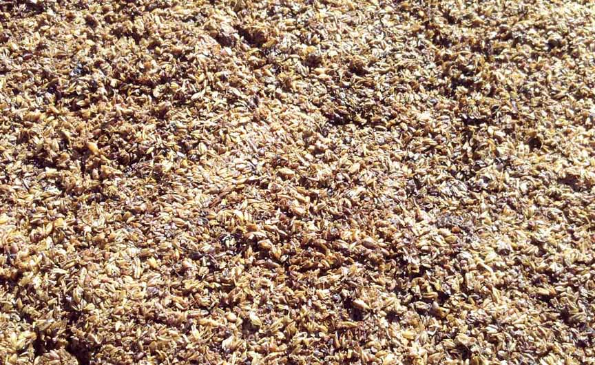 This pan of spent grain would be destined for the landfill if not for the creative use being employed by the Coronado Brewing Company. Photo by Joe Ditler.