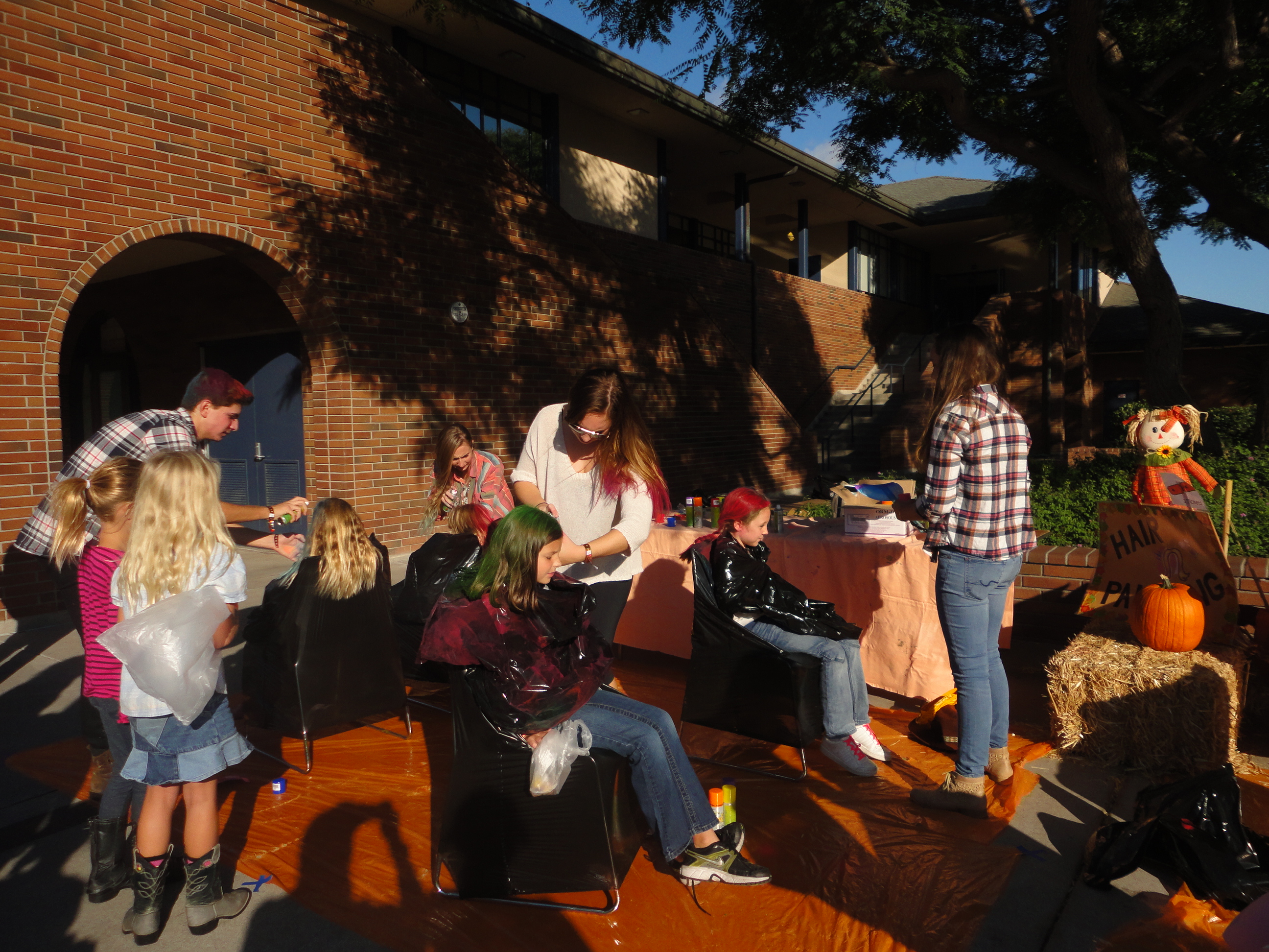 Over 8,000 game tickets were sold to participants. Most games cost two tickets. There was also a dunk tank and a hair coloring station. Above, several students get their hair colored by high school volunteers working the event.