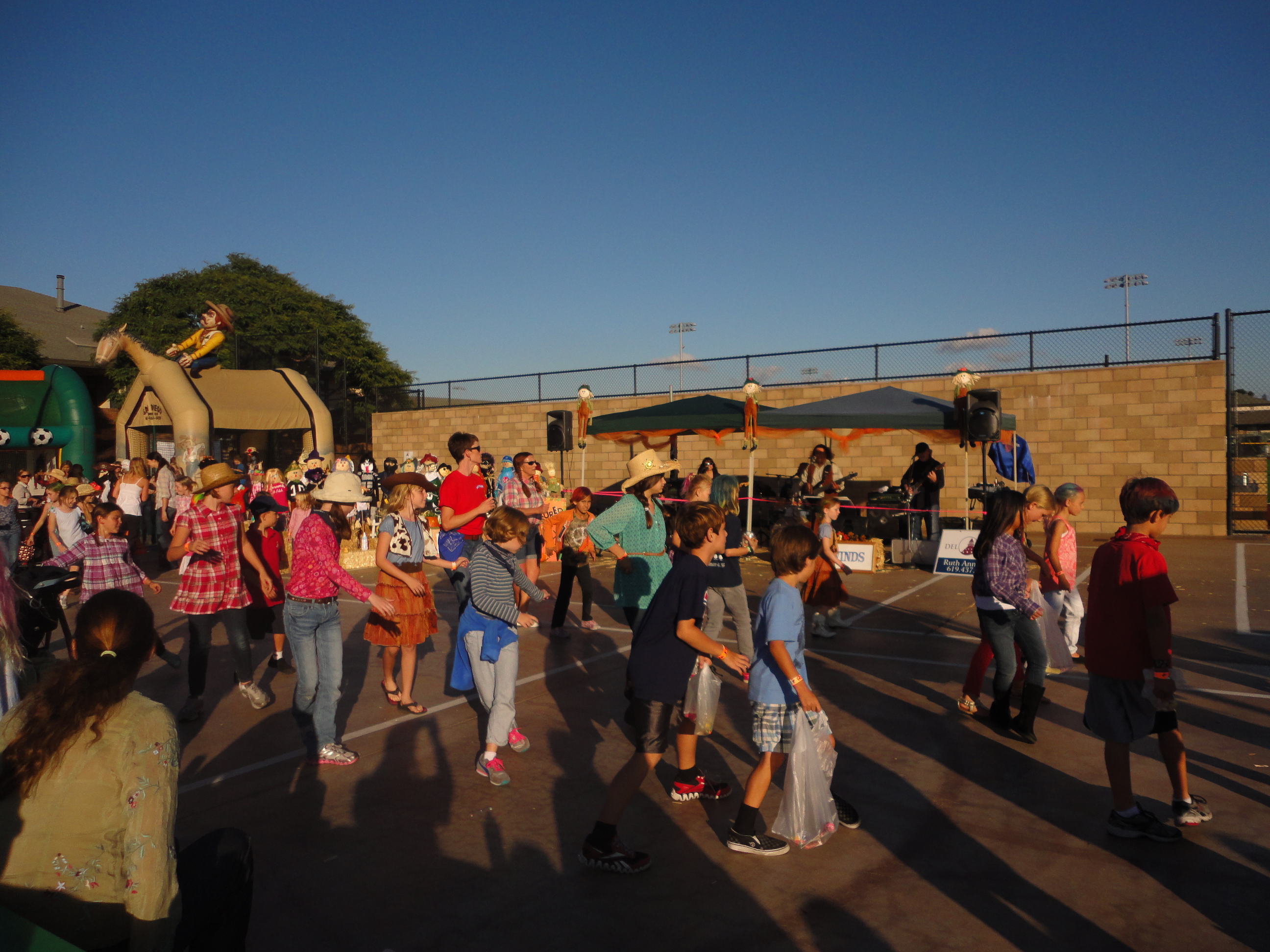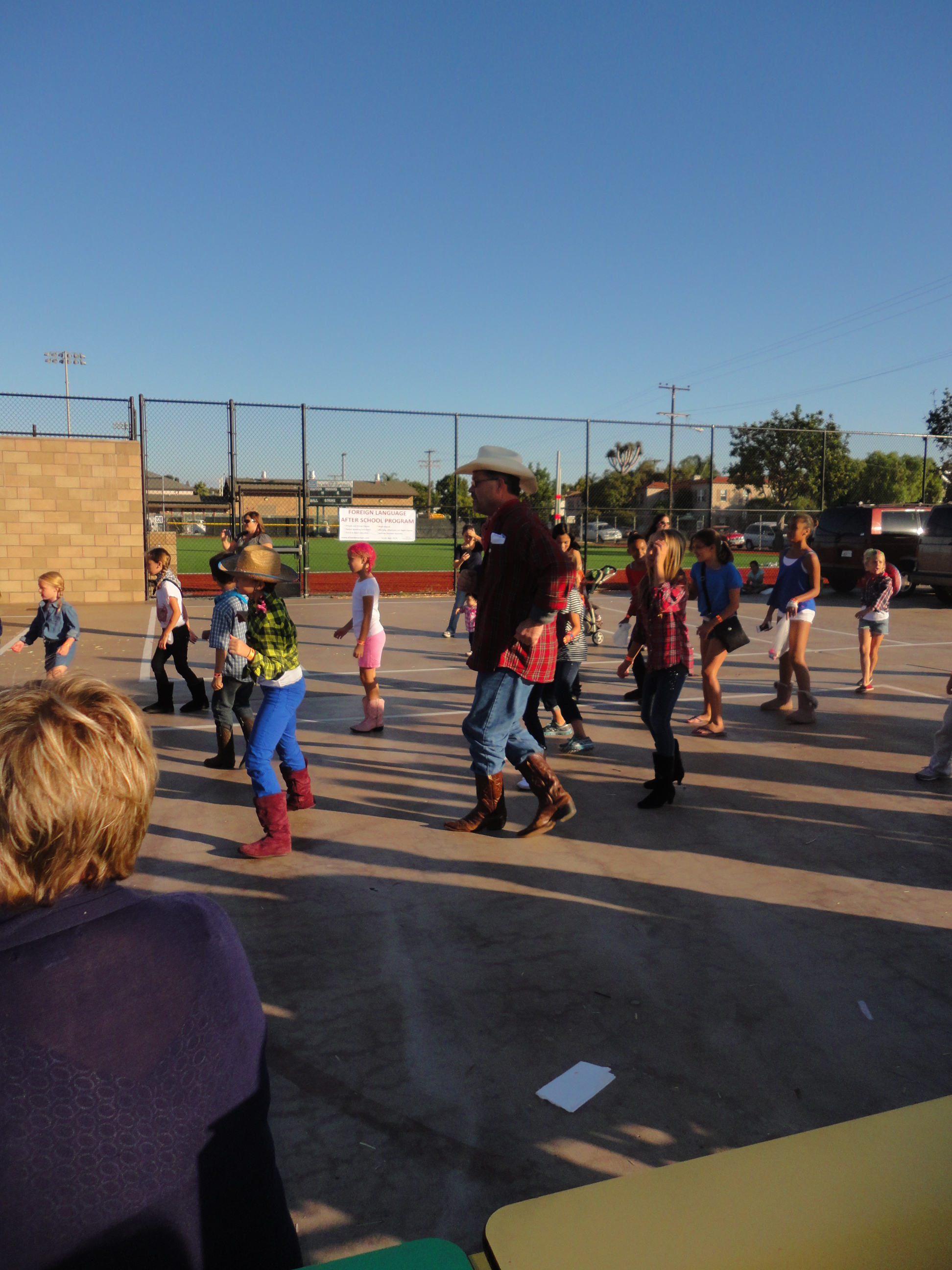 Fifth grade teacher Mr. Patrick (right) and other attendees enjoy some line dancing. The band was sponsored by Del Realty’s Ruth Ann Fisher and Elia Enterprises’ Lorena Baca and they were lots of fun!