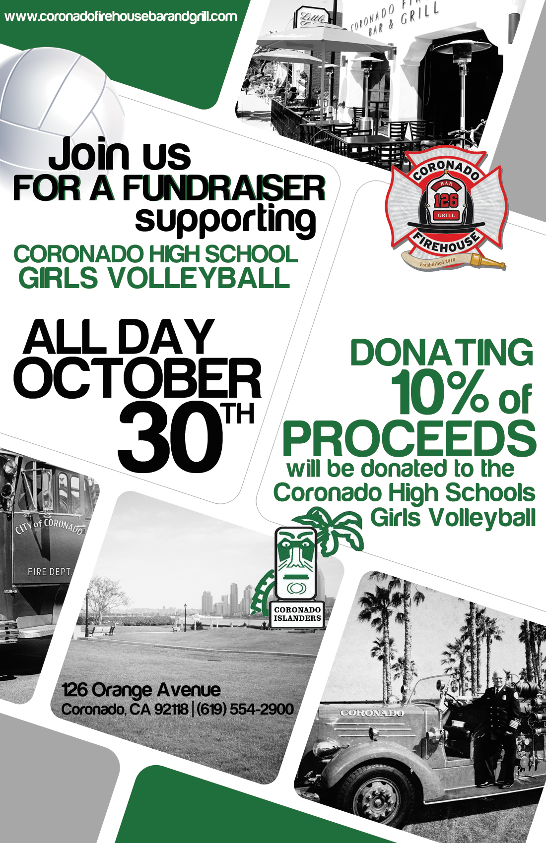 Head to the Coronado Firehouse Bar and Grill on Orange Avenue. Tell them you are supporting Islander Girls’ Volleyball and 10% of your check will be donated to CHS Girls Volleyball. No need to print the flyer, just show it on your phone.