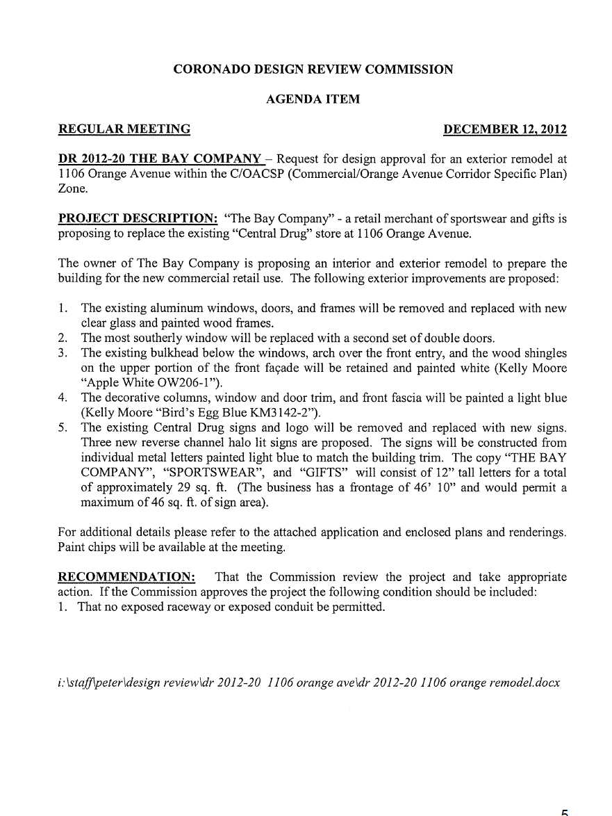 The Coronado Design Review Commission will be meeting December 12th at 3pm to review designs proposed by Bay Company. Below are two screenshots from the Design Review Commission agenda for the upcoming meeting at City Council chambers (1825 Strand Way). These meetings are open to the public if they wish to attend.