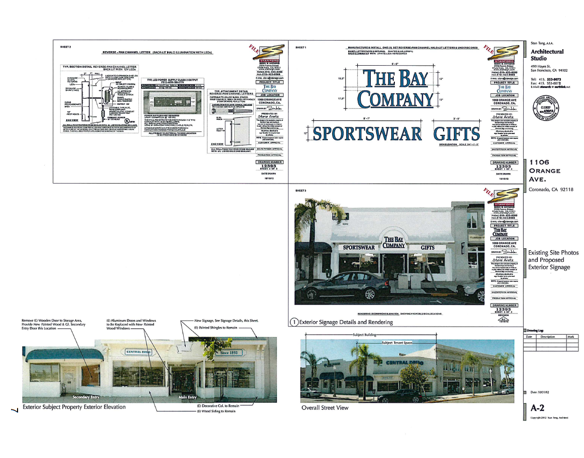 The Coronado Design Review Commission will be meeting December 12th at 3pm to review designs proposed by Bay Company. Below are two screenshots from the Design Review Commission agenda for the upcoming meeting at City Council chambers (1825 Strand Way). These meetings are open to the public if they wish to attend.