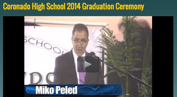 Some parents of Coronado High School graduates were upset by comments made in the keynote speech given by Miko Peled. He is a writer, activist and former owner of Coronado’s Martial Arts America. Peled’s speech starts at the 32:40 mark in the video and is 12 minutes long. You can watch the video here.
