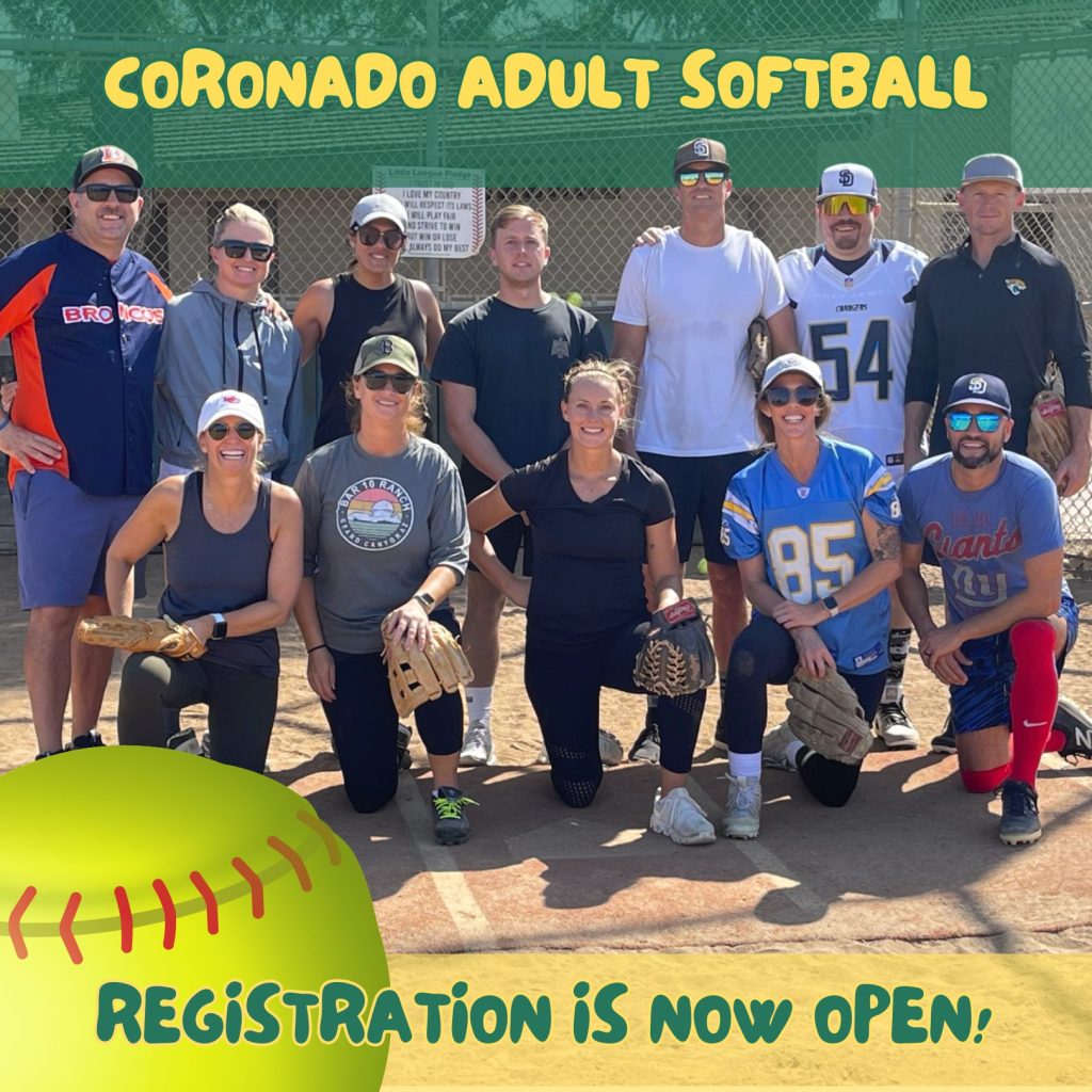 For more information contact the Parks and Beaches division of Coronado Recreation and Golf Services at 619-964-6646, or email [email protected]. To register visit: coronado.ca.us/register or use this direct link bit.ly/SummerAdultSoftballLeague.