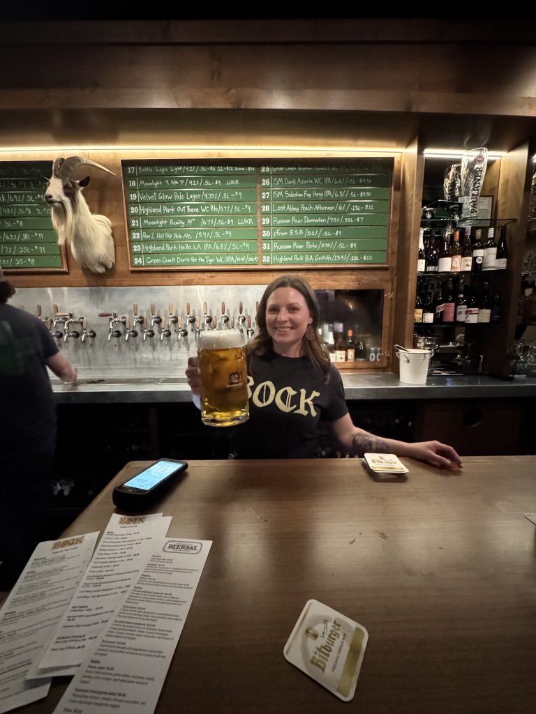 The Padres scored their first run in 30 innings but ultimately lost the game. We ordered an Italian pilsner and an Uber. The journey to Bock is a short 14 minutes, and it’s well worth the effort. Bock’s South Park neighborhood is charming, with several other fun businesses to explore. If you have a wine enthusiast in your crew, they’ll find some fun wines curated by Bock’s friends at Vino Carta. The one that caught my eye was the Blaufrankisch, an “uber-cool Austrian red” available by the bottle. There is something for everyone at Bock, lederhosen optional.