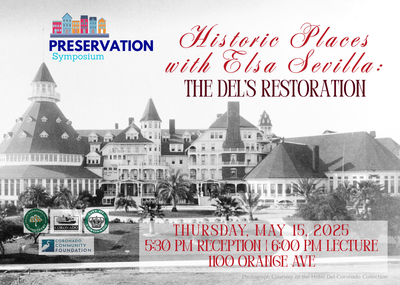 Join Coronado MainStreet, the Historical Association, and the City of Coronado for the Preservation Symposium, sponsored by the Coronado Community Foundation, as we celebrate preservation in our community. Tickets for the Preservation Symposium are available at coronadohistory.org.