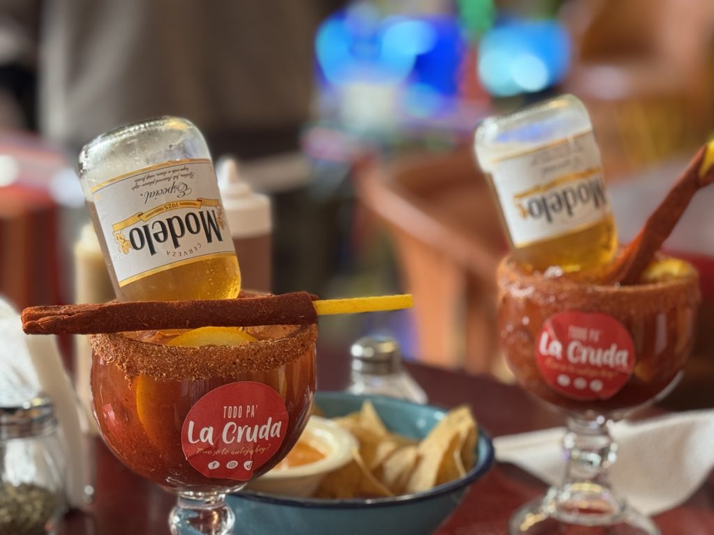 When the micheladas arrived, I was taken aback. These were not your average drinks. They were large chalices of curative nectar, with the bottles of Modelo upended in the glasses. The bartender dressed the rims in Tajin and provided large straws dipped in Chamoy. It was a sight to behold, and I was frankly speechless, taking a minute to form a plan of attack.