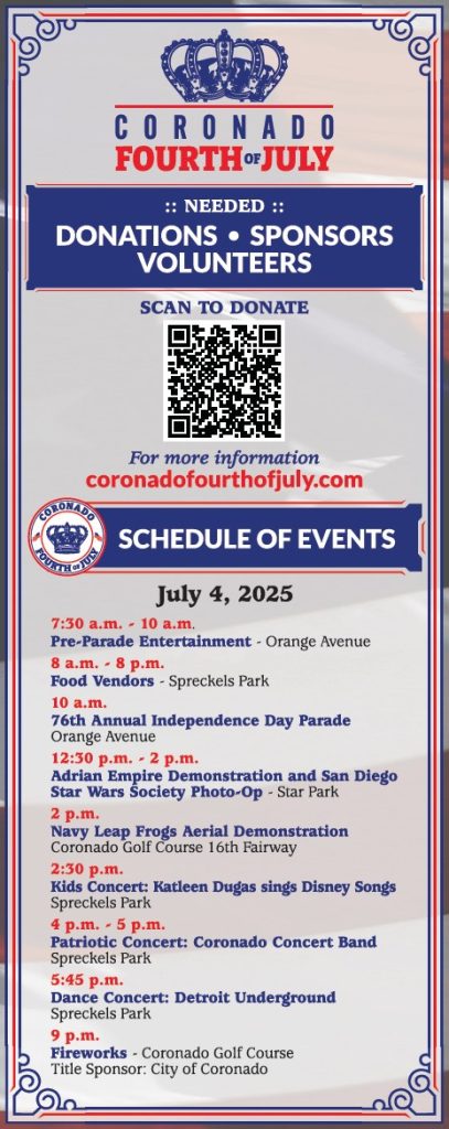 Undisputedly, the Fourth of July is the biggest celebration of the year in Coronado. With multiple events spanning the entire day, the non-profit organization Coronado Fourth of July has its work cut out all year long.