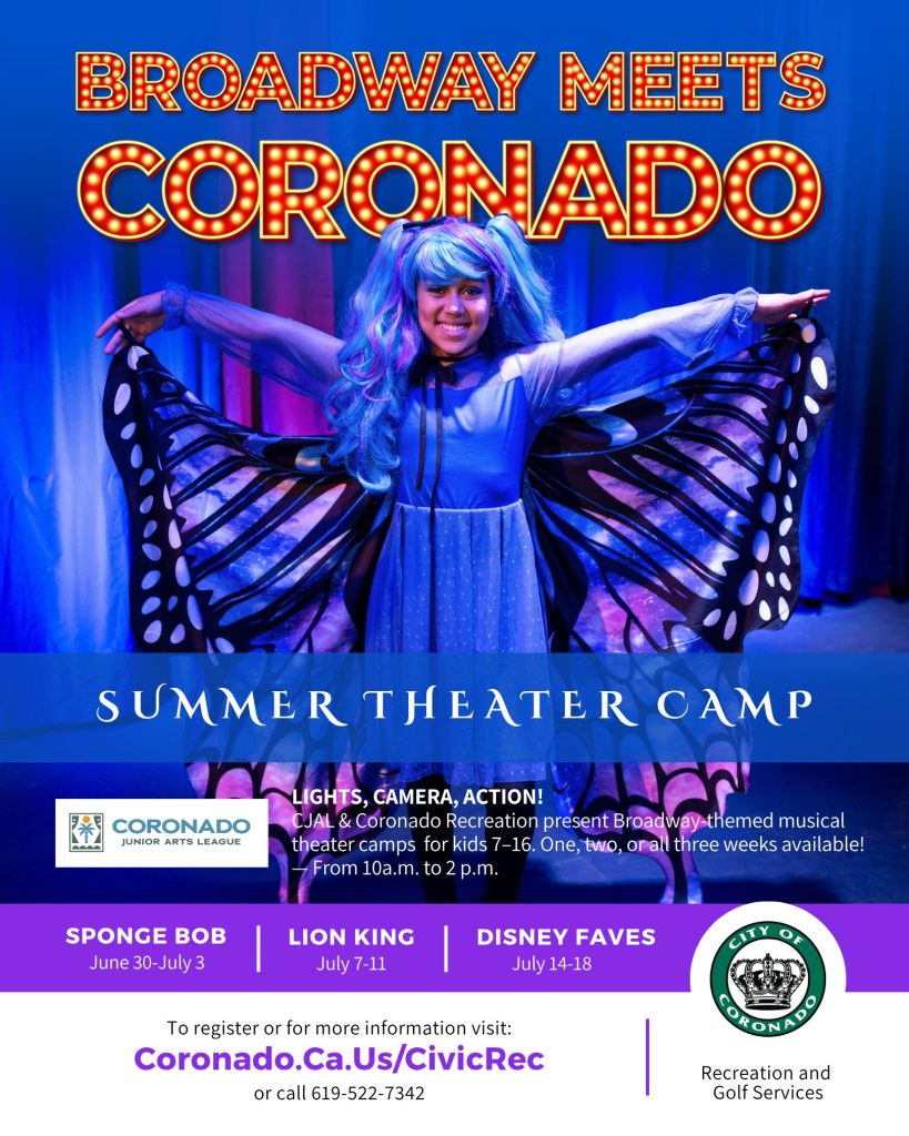 The Coronado Junior Arts League (CJAL), in partnership with the City of Coronado Recreation and Golf Services, is excited to present Broadway Meets Coronado: Summer Theater Camps 2025.