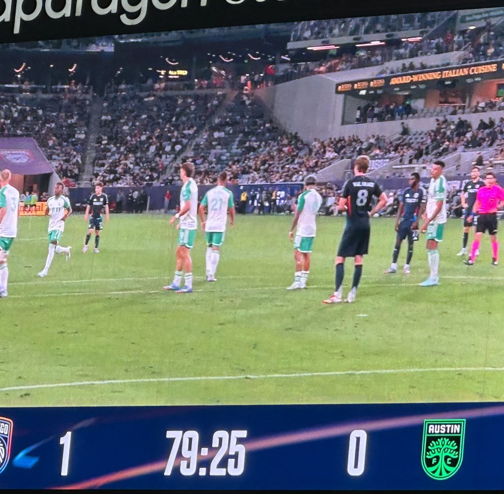 SDFC is in their inaugural season in San Diego and is currently ranked second in the west for MLS. Coming off a win against LA Galaxy, SDFC drew a large crowd of over 27,000 fans in attendance. Among the SDFC fans were a large contingent of CJ Fodrey fans, family and friends along with future soccer stars chasing the same dreams Fodrey had. Those Fodrey fans went wild when he came onto the field during the second half, bringing energy and vigor to the Austin FC team. Austin was down 1-0 when Fodrey came onto the pitch but he was doing his best to make chances for the team in the final third. SDFC dominated the game with the majority of possession and ultimately winning 2-0 over 10th ranked Austin FC.