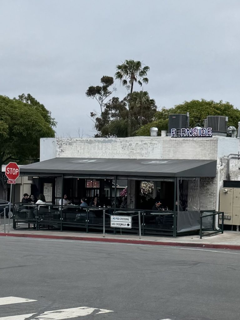The Fernside burger, served with waffle fries, is a double smash burger for $17, and it is one of the best in San Diego. The single patty “Diet Fernside burger” is a deal at $14. The menu is fun and eclectic; for example, the frozen slushees come with printed cups that mimic the old ICEE™ we had as kids. Instead of a polar bear mascot, Fernside slushees feature a sloth, but the cup has all the colors and design of the original ICEE™ cup. There are three fun flavors, and you could try them all at $12 a piece. They even have nonboozy versions for kids. You can also get them to-go. Fernside is not only dog-friendly, but the place is always packed with families, and if you were wondering, they do a killer brunch.
