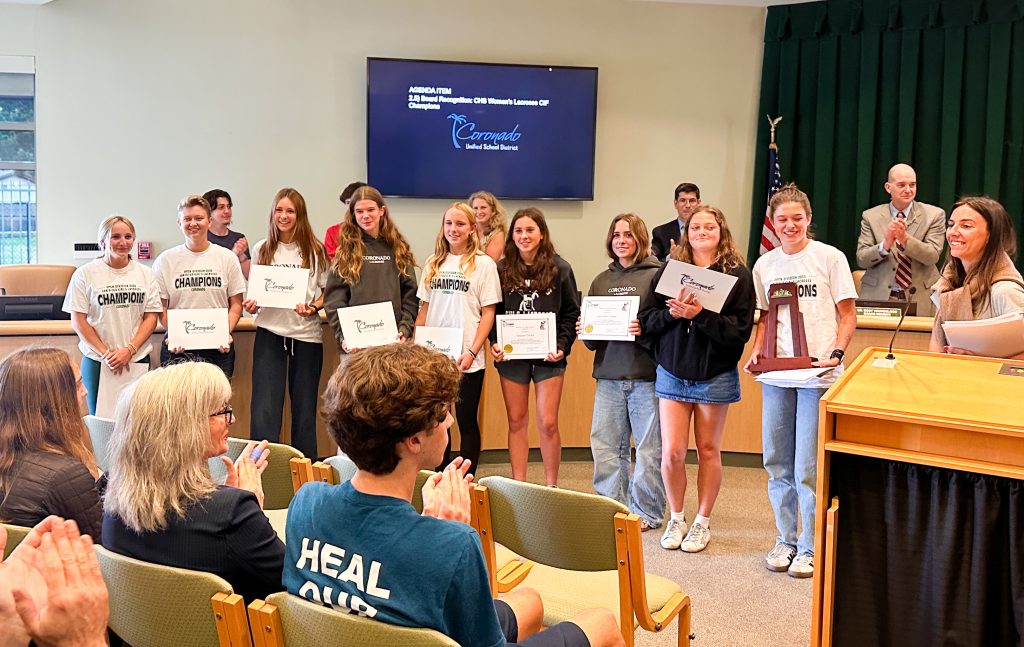 The June 5 Coronado Unified School District school board meeting was packed with celebrations as the board recognized new retirees, the CHS Girls Lacrosse Team, the Stop the Sewage Club and more.