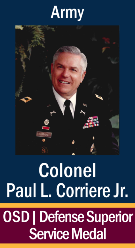 After promotion to Colonel, Corriere was assigned as inspector general to “clean up” a compromised three-state region before serving under the Secretary of the Army and Assistant Secretary of Defense for Naval Affairs. He took great pride in establishing military support for counter-drug efforts.
