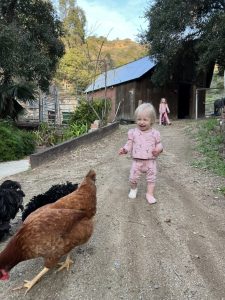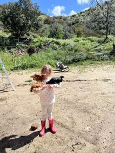 “We had a house in LA on a few acres,” Stephanie shares. “There were horses and chickens. My daughter named all of our chickens, but I wanted to name one Dolores. She wouldn’t let me.” Stephanie laughs, then continues, “I love old people’s names for my chickens. So I thought we should write a book about a hen. Parker helped me write it.”
