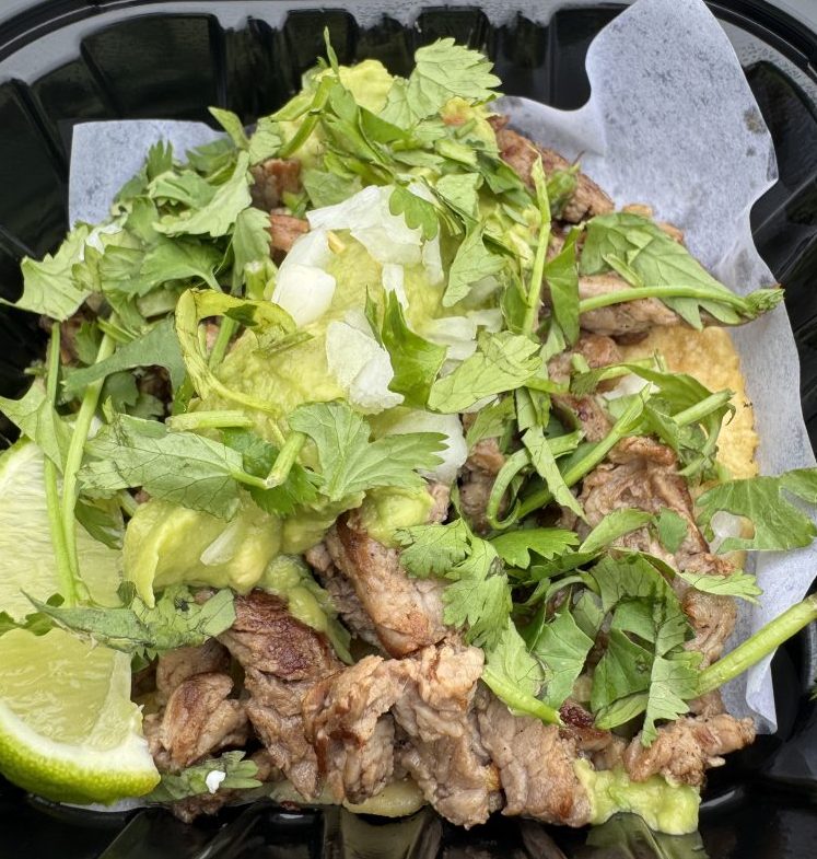 Let’s cut to the chase and talk about the food. I, of course, ordered a Crack Taco, made with the famous Burgundy and pepper marinated tri-tip, and I also ordered one of my all-time favorites, a potato taco. The Crack Taco came on a small, freshly made corn tortilla. The tortilla was piled high with chopped tri-tip and topped with guacamole, cilantro, and onions. I struggled to pick it up and eat it without a significant amount of meat falling out. This taco was not your typical carne asada; the meat was juicy, and the flavor was what I remembered liking from my experiences at Seaside Market. By the time I had polished off the Crack Taco, there was a good amount of tri-tip left on my plate.